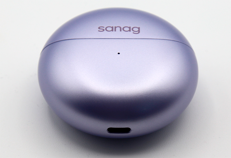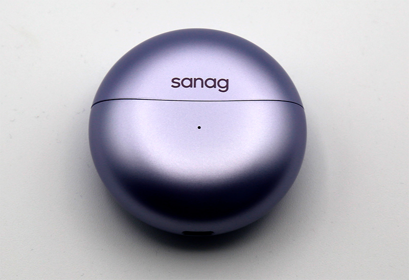 Зарядный кейс с наушниками выполнен из матового пластика. В центре корпуса находится светодиод, который демонстрирует процесс зарядки.