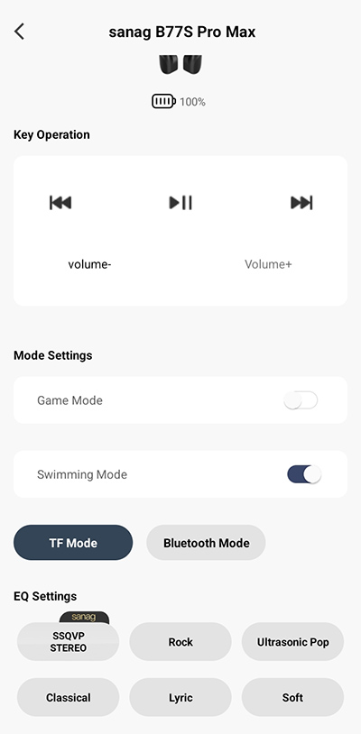 Управлять наушниками можно через приложение Sanag, доступное в Google Play и AppStore.
