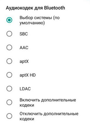 Кроме того, начиная с восьмой версии Android уже в самой системе поддерживается весь набор кодеков и пользователь может выбирать предпочитаемый (разумеется, при условии наличия поддержки этого кодека беспроводными наушниками).