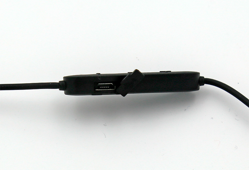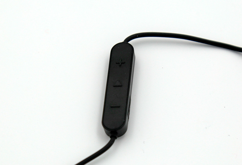 Пульт управления имеет традиционные три кнопки: плюс, минус, воспроизведение. Поддерживаются короткие, длинные и одновременные нажатия. Клавиша воспроизведения - воспроизведение/пауза, включение и выключение (длинное нажатие), прием/сброс звонка. Плюс и минус регулируют звук, переключают треки вперед и назад, включают-выключают режим расширенного баса.