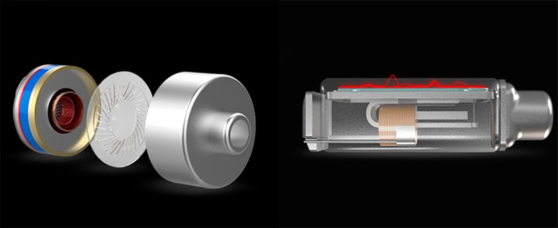 Наушники - гибридные. В их конструкцию входят 8-миллиметровый динамический излучатель, который отвечает за громкость, глубину звука и басы, и арматурный драйвер, отвечающий за детализацию и качество высоких и средних частот.