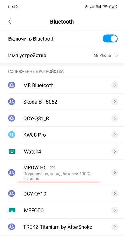 Подключение по беспроводной связи производится стандартным образом: длинное нажатие кнопки питания переводит наушники в режим подключения, в смартфоне/планшете делается поиск нового устройства и нужно выбрать Mpow H5. При этом используется кодек SBC, aptX тут не поддерживается.