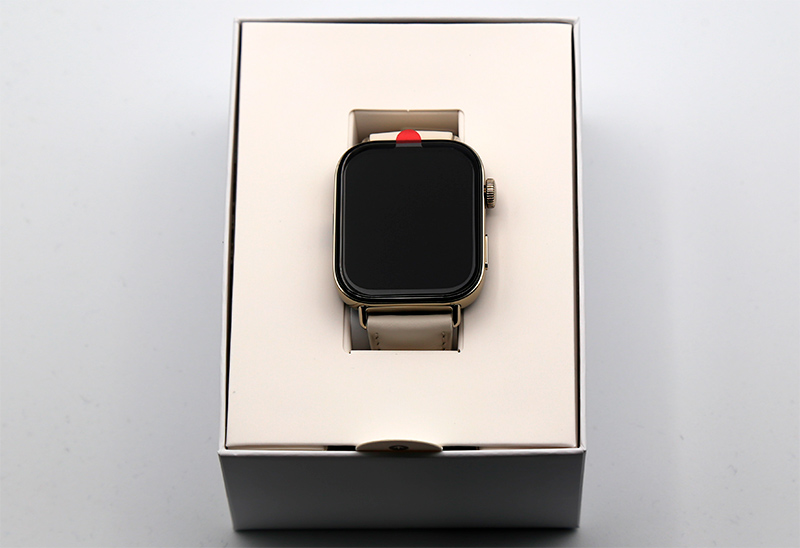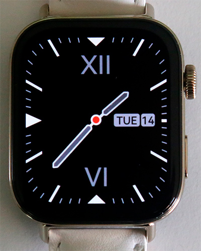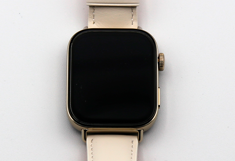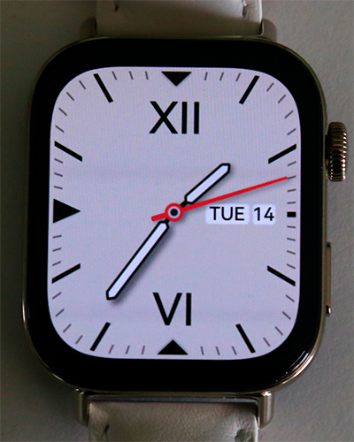 Корпус выполнен из металла. Часы имеют два управляющих элемента: вращающееся колесо для скроллинга, которое также нажимается, и нижняя кнопка.