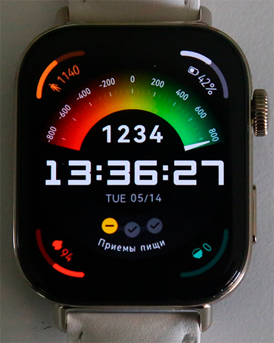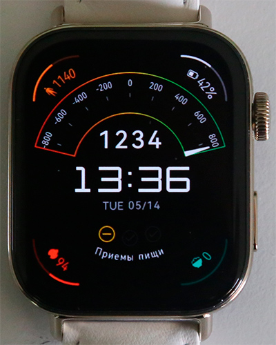 Крэдл для зарядки надежно примагничивается к корпусу часов, и сбоев при зарядке у меня не было ни разу. С нуля до 100% часы заряжаются полтора часа, что является вполне неплохим показателем.