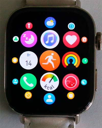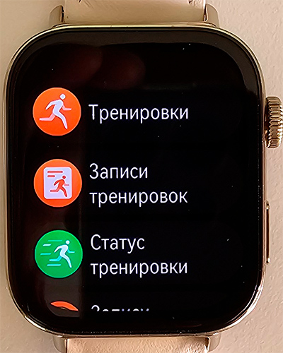От циферблата свайп влево - виджеты обычных приложений (сон, аудиоплеер) плюс информационные виджеты, где собираются различные данные. Ненужные виджеты из этого списка можно убирать, порядок виджетов можно задать, некоторые виджеты настраиваются (например, виджет тренировок).