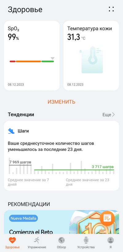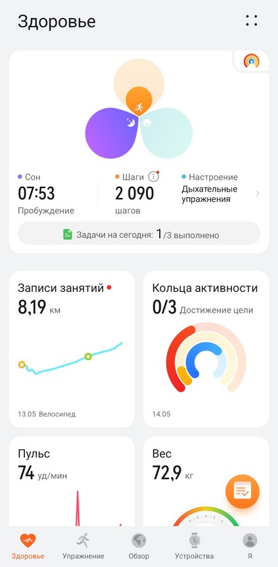 Мониторинг: сон, физическая активность, тренировки, сердечный ритм, SpO2