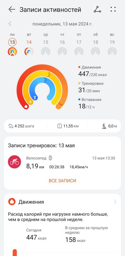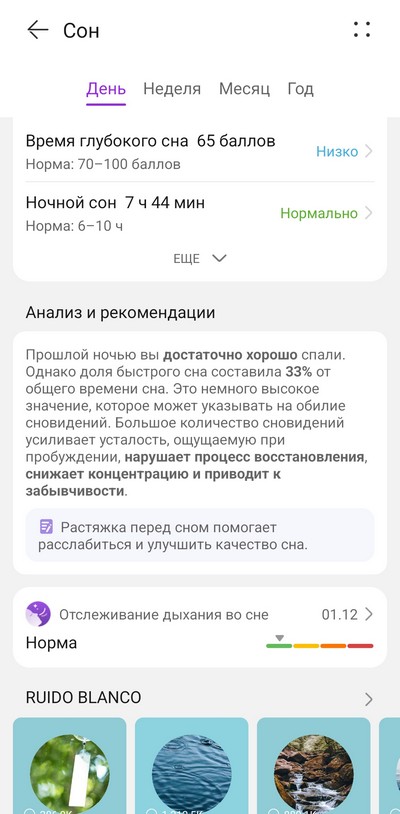 С точки зрения мониторинга - все как обычно. Мониторинг сна - отличный: Huawei это умеет делать лучше других производителей (к отслеживанию сна у Samsung у меня до сих пор немало претензий). Измерение пульса в спокойном режиме - хорошо, я сравнивал с тонометром. Во время занятий спортом - тоже вполне неплохо, особенно если ремешок хорошо затянуть. Явной лажи с пульсом во время тренировок я не заметил.