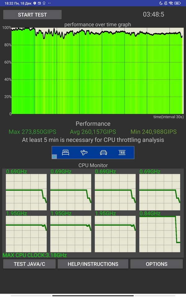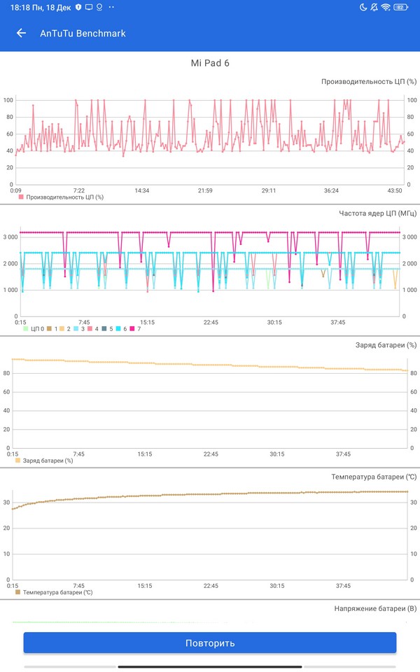 Тест на троттлинг. Все отлично, падения производительности практически нет.