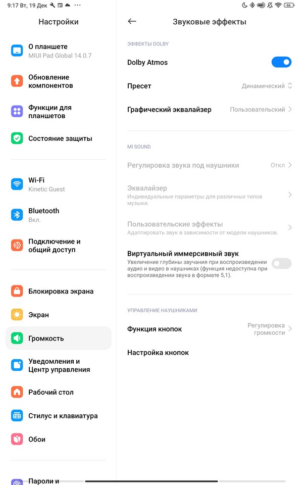 При использовании наушников можно включать Dolby Atmos, выставлять пресеты и настраивать эквалайзер. Использование Dolby Atmos немного добавляет низких и средних, но одновременно слегка сглаживает высокие. Иногда это улучшает звучание, иногда ухудшает - зависит от типа звука. Также режим Dolby Atmos создает определенный эффект объемного звучания.