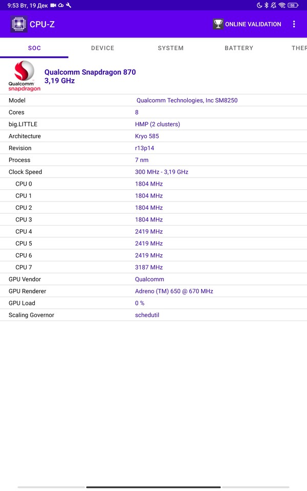 Процессор: Qualcomm Snapdragon 870 (7 нм)