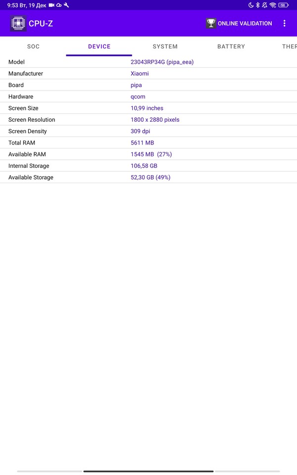 По поводу зарядки. Планшет поддерживает быструю зарядку с мощностью 33 ватта.