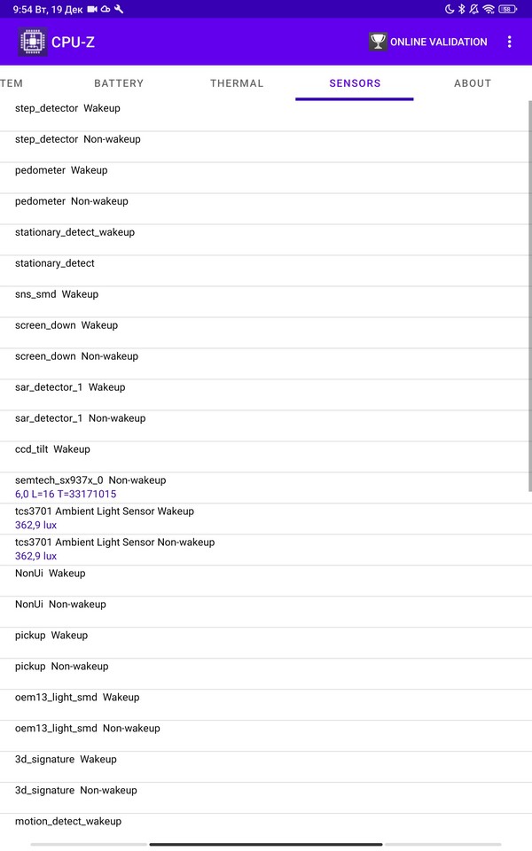 Дополнительно: акселерометр, гироскоп, датчик освещенности, датчик Холла