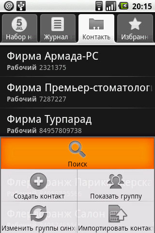 При прокручивании большого числа контактов на экране справа появляется заметный скроллер плюс на экране возникает буква алфавита, с которой начинаются прокручиваемые на данный момент контакты. Так что искать конкретных абонентов можно достаточно эффективно. Кроме того, доступен обычный поиск подстроки.