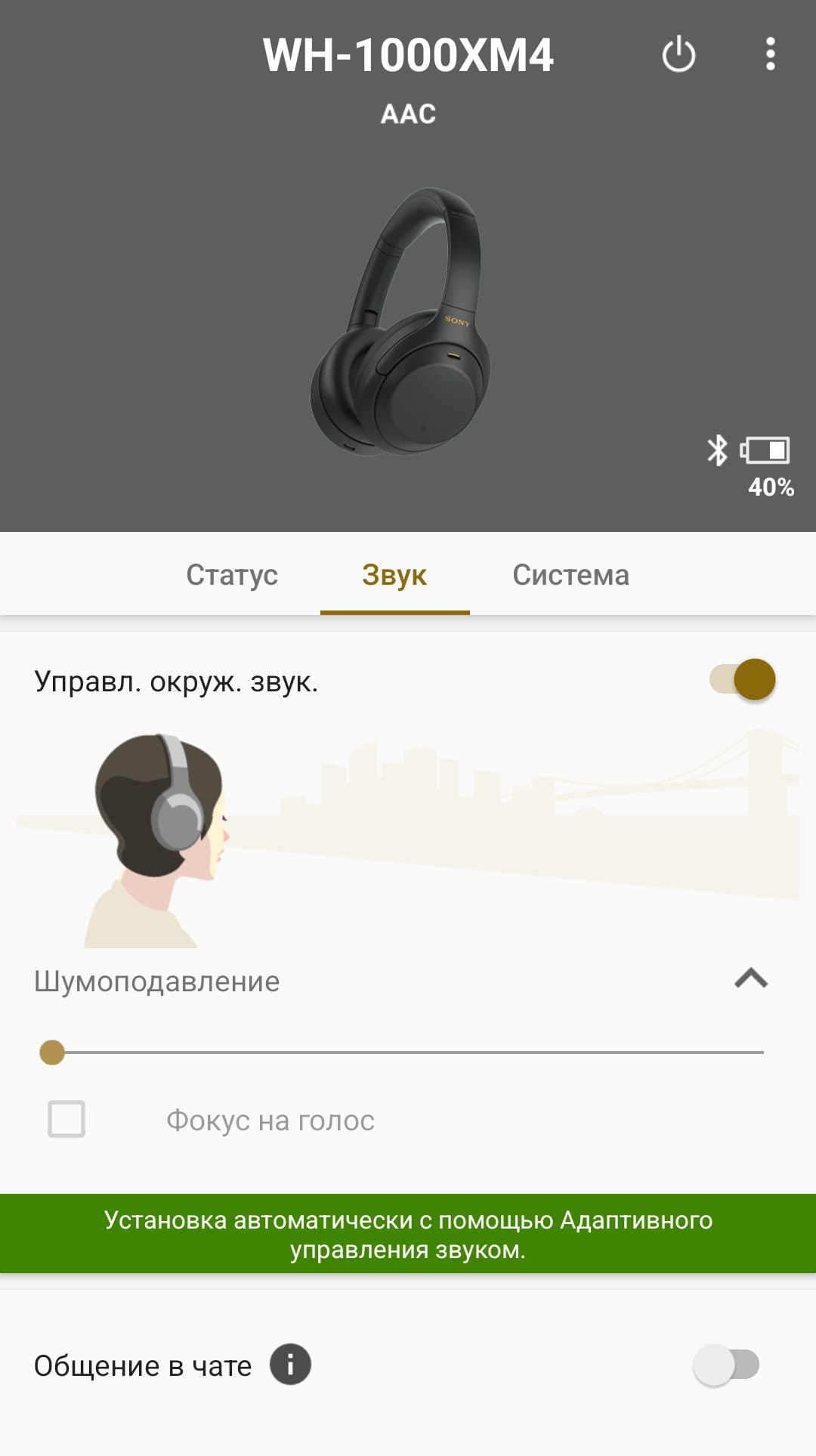 В приложении показывается уровень заряда, там можно менять режимы шумодава, использовать эквалайзер, включать геймерский режим с минимальной задержкой звука, включать эффект "окружения" для звука, задействовать мультипоинт и включать кодек LDAC для наиболее качественного звучания (при этом будут недоступны мультипоинт и геймерский режим). Также в приложении можно задавать дополнительные действия по двойному и длинному нажатию на кнопку шумоподавления.