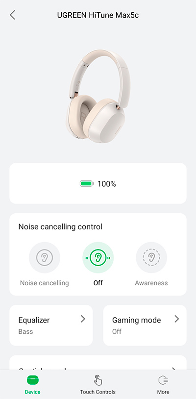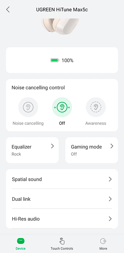Работой наушников можно управлять через приложение Ugreen Home, однако его нет в Google Play, приложение нужно скачать с сайта разработчика (в инструкции есть QR-код), однако оно есть в Apple Store.