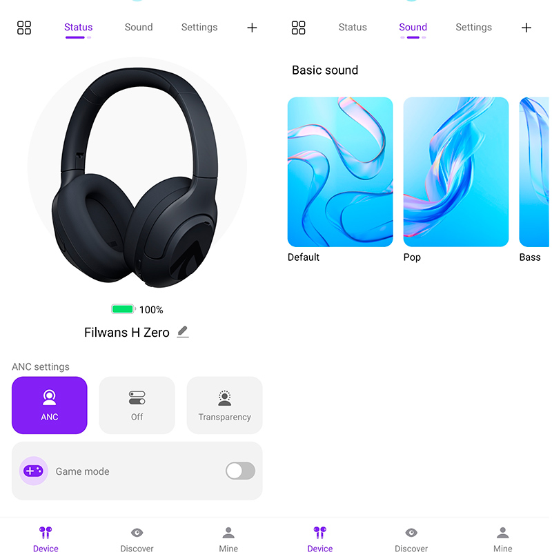Работой наушников можно управлять через приложение Filwans Sound, которое есть в Google Play.