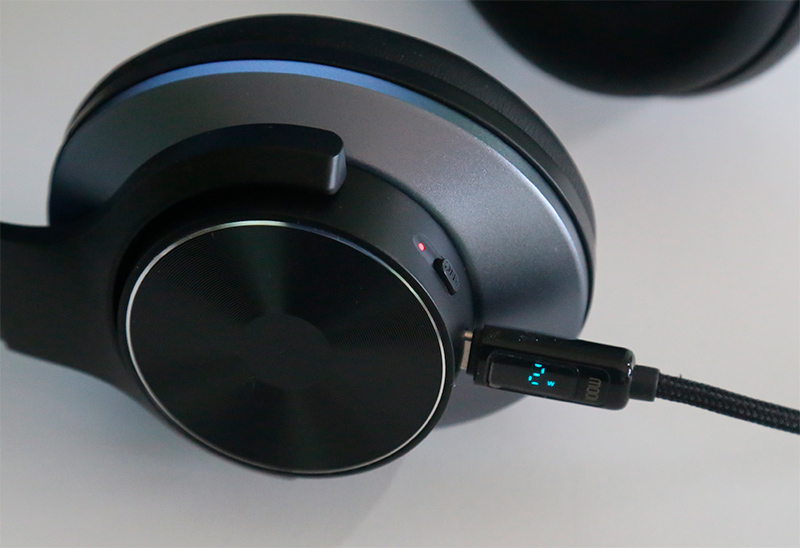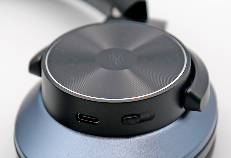 На левом наушнике - кнопка включения шумодава со светодиодом, порт Type-C для зарядки наушников.