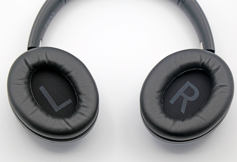 Амбушюры (несменные) также выполнены из мягкой экокожи, на тканевой поверхности динамиков нанесена маркировка левого и правого наушника.