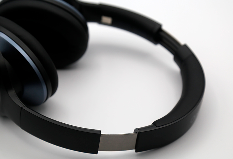 Стандартный дизайн полноразмерных наушников. Мягкое оголовье из экокожи, обод выполнен из пластика, чашки наушников выполнены из металла и качественного матового пластика.