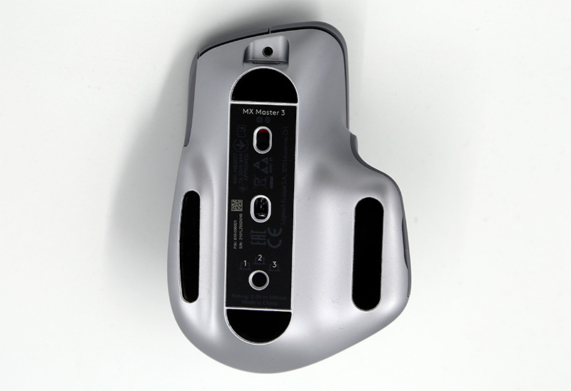 На нижней части - порт Type-C для зарядки (слава богу, а то у 2S был microUSB), кнопка включения-выключения и кнопка сопряжения и переключения между устройствами. (Мышка поддерживает одновременное подключение до трех устройств, что очень удобно.)