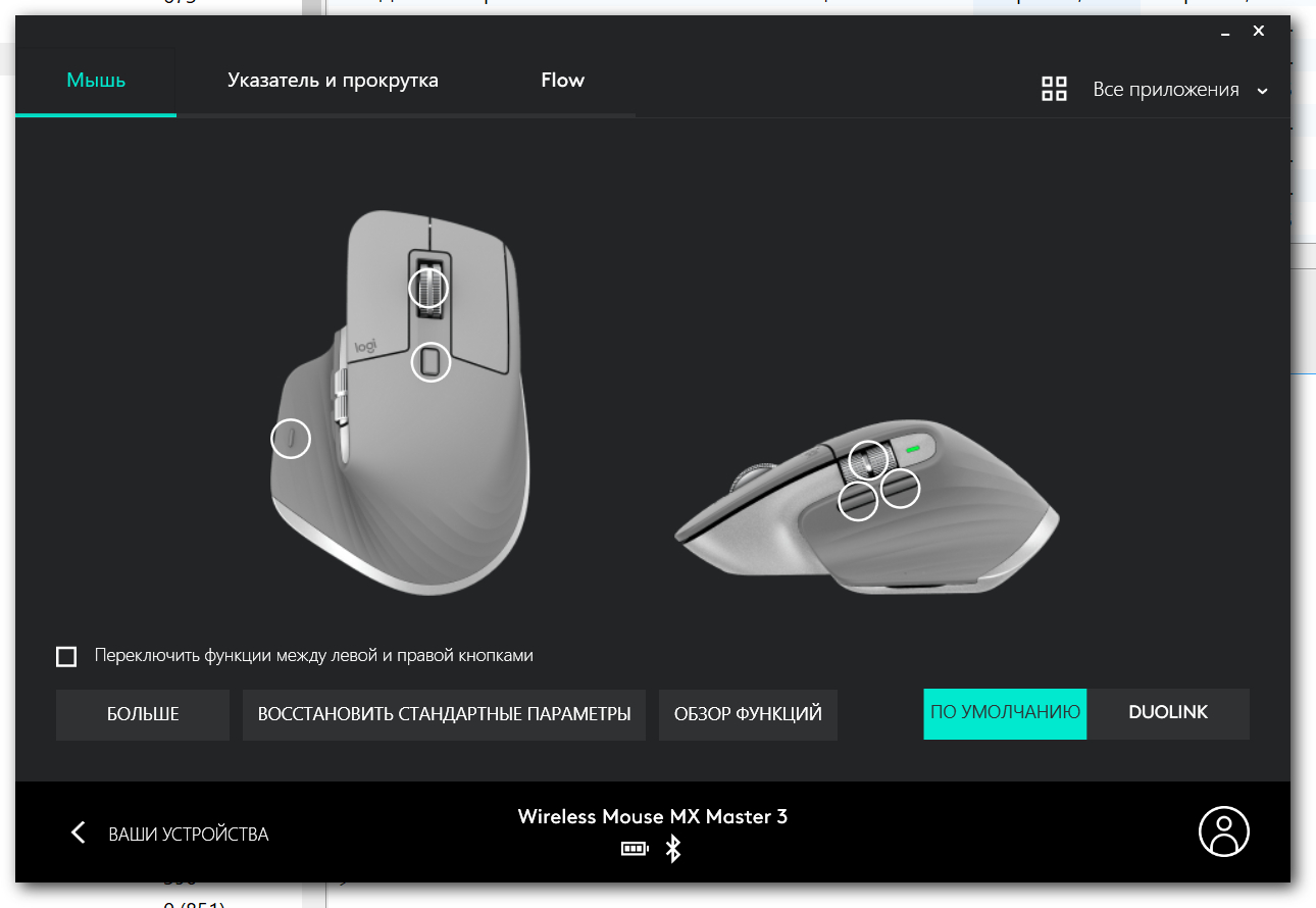 И здесь очень интересно совмещается точность скроллирования и возможность мгновенного перехода к быстрому пролистыванию больших объемов. Надо сказать, что когда в принципе хоть раз поработаешь на мышке с инерционным колесом-скроллером (они есть достаточно недорогие), то на мышке с обычным пошаговым колесиком работать уже не будешь по определению, а уж когда познакомишься с тем, как это все реализовано в таких продвинутых мышках, как MX Master, то после них любые другие мышки кажутся достаточно ущербными.