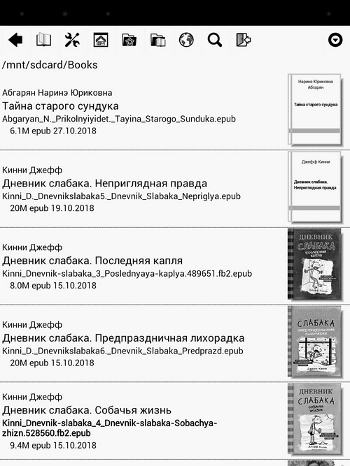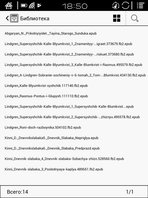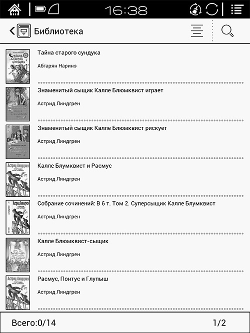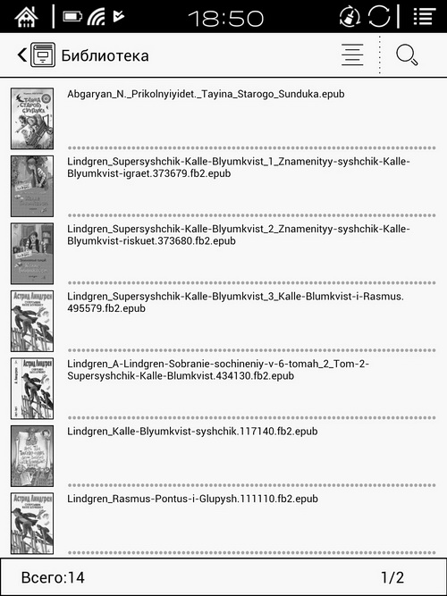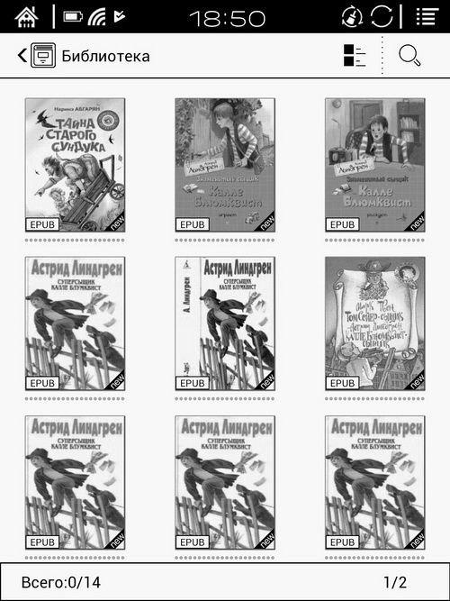 Раздел "Библиотека". Книги можно выводить тремя способами: обложки, обложка и название книги, список названий.