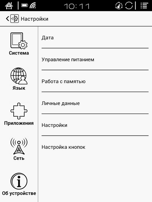 Мне этот ридер очень понравился. Он и так-то обладает хорошей функциональностью, а уж нормальная поддержка андроидных приложений из Google Play и вовсе расширяет его возможности практически безгранично. Очень радует дублированная (кнопки и сенсорный дисплей) схема управления, также работа кнопок гибко настраивается. Плюс - качественная настраиваемая подсветка.