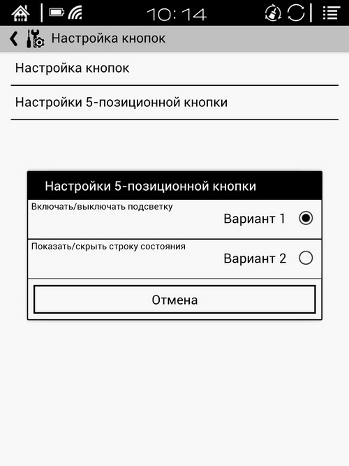 Несмотря на то что экран здесь сенсорный, в ридере присутствуют пять элементов управления: пятипозиционная кнопка, расположенная под дисплеем, и по две кнопки слева и справа по центру ридера.
