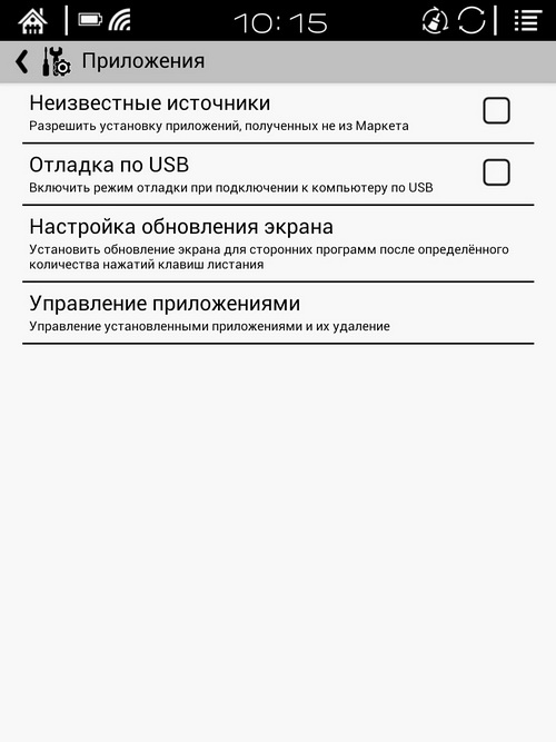 Раздел "Приложения". И вот тут начинается самое интересное. Потому что ридер - на Android. И тут есть Play Market, из которого вы можете устанавливать любые программы. Любые ридеры, RSS-агрегаторы, игры - и так далее и тому подобное. Также здесь есть предустановленное приложение для работы с почтой.