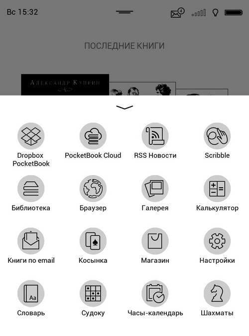 Шторка снизу вверх - все приложения системы (как в смартфонах).
