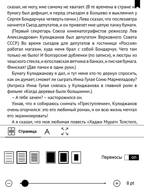 Настройки межстрочного расстояния, полей, переносов и размера шрифта.