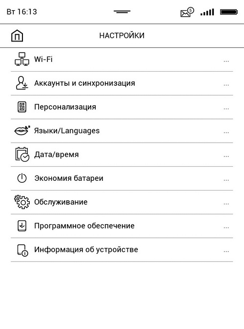 Здесь программное обеспечение несколько отличается от прошивки PocketBook 616, потому что там экран не имеет сенсорного слоя, а здесь - имеет.