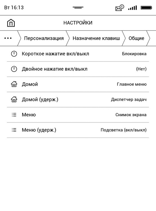 Кнопки слева направо: "Домой", "Влево", "Вправо", "Меню". Они очень нелишние, кстати. Хотя ридером можно управлять только с помощью пиктограмм и жестов на дисплее.