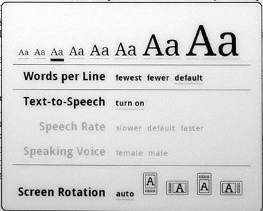 Как видите, средств настройки текста в меню нет. Но они вызываются специальной кнопкой Aa на клавиатуре - так повелось еще с первого Kindle.