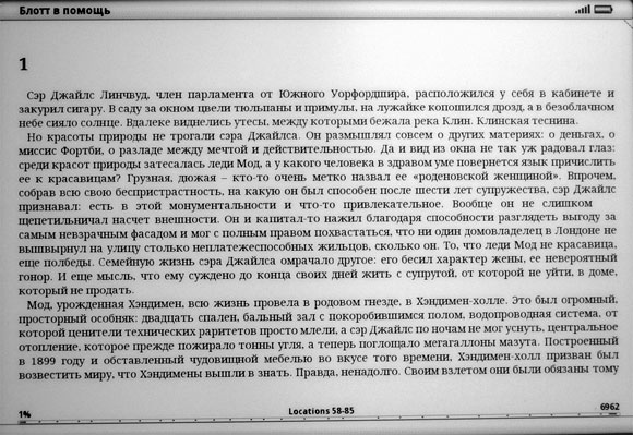 Конечно, всех очень интересует, как на таком ридере воспроизводятся документы PDF, потому что на маленьких ридерах PDF читать практически бессмысленно.