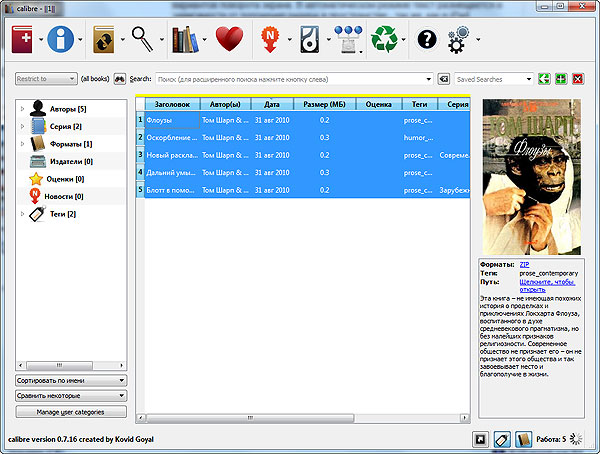 Впрочем, это довольно простая процедура, если скачать замечательную и при этом совершенно бесплатную программу Calibre. В ней вы можете конвертировать хоть отдельные файлы, хоть всю библиотеку сколько угодно большого размера.