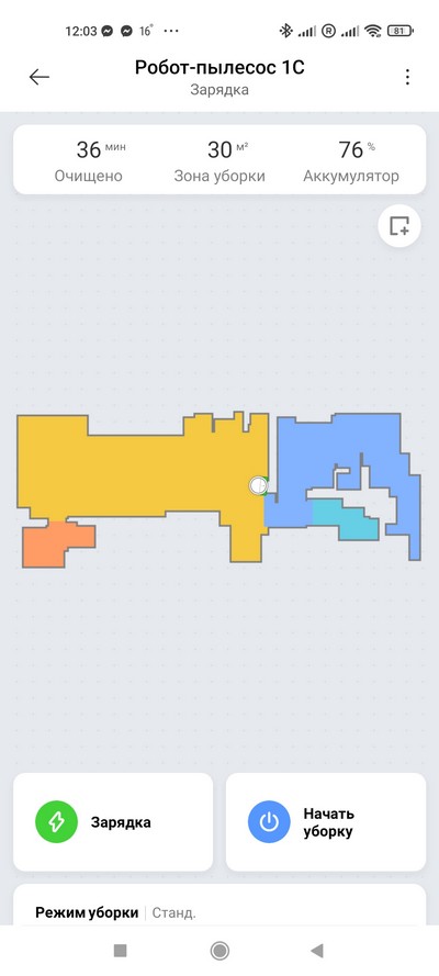 При последующих уборках здесь по построенной карте (если в помещении что-то меняется, то карта будет корректироваться) в реальном времени будет демонстрироваться процесс уборки.