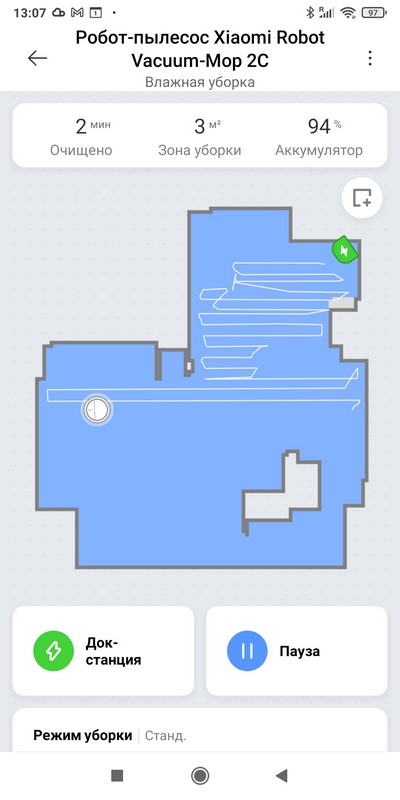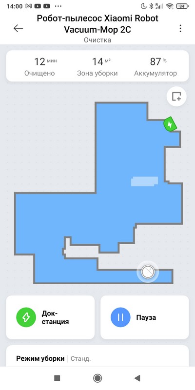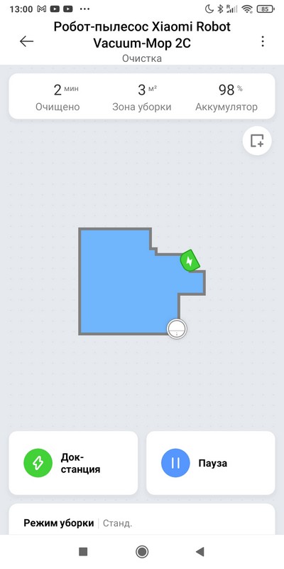 В динамике это выглядит как-то так (левый скриншот). На правом скриншоте - всё, уборка закончена, робот-пылесос вернулся на зарядную станцию.