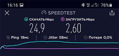 Скорость в той же комнате при подключении на 2,4 ГГц.