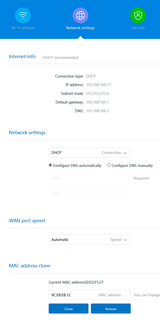 Добрый день.Вопрос по поводу роутера xiaomi 4a,интернет у провайдера привязан к мак адресу старого роутера,а в настройках xiaomi нет ручного ввода мак адресу,только можно клонировать,что делать в таком случае?