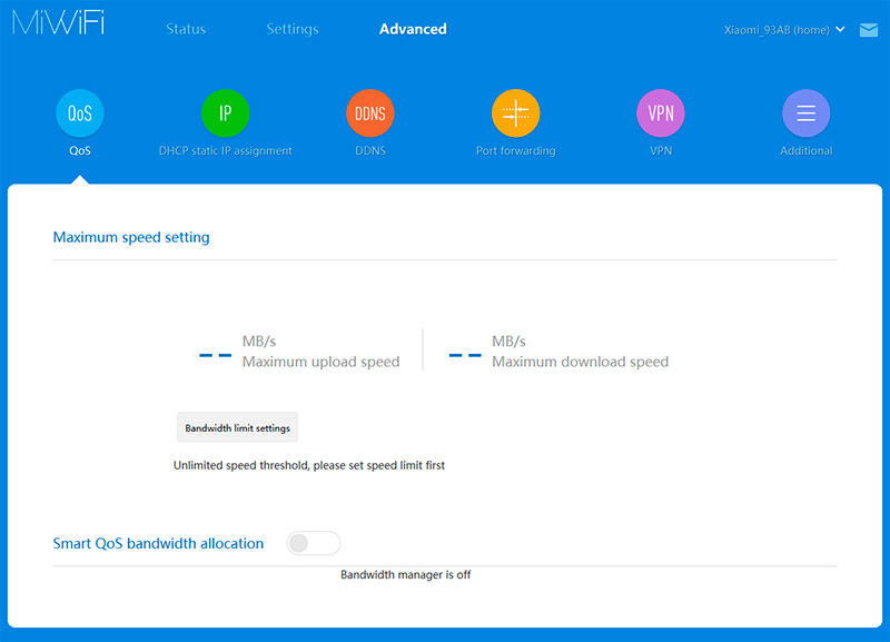 Ну и расширенные настройки: ограничение полосы пропускания, DDNS, проброс портов, VPN и устройства Plug and Play.