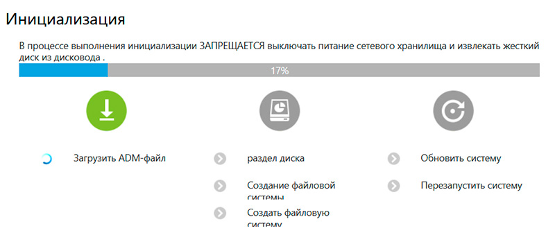 Устанавливаем в NAS подготовленные для него диски, включаем устройство.