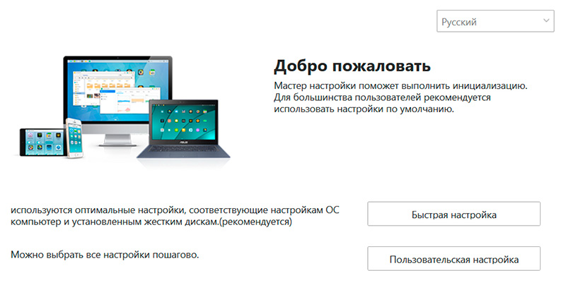 Запускается мастер настройки. Для обычных пользователей лучше выбрать "Быструю настройку", продвинутые пользователи выбирают "Пользовательскую настройку".