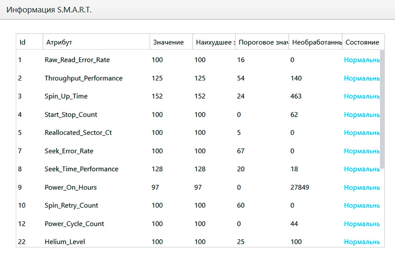 Информация S.M.A.R.T. (контроль состояния жесткого диска).