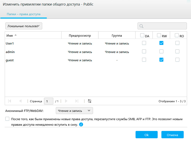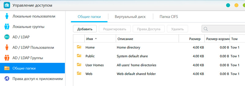 Также при создании нового пользователя для него по умолчанию будут установлены доступы на уровне выбранной группы, но вы можете отдельно редактировать для него доступы по каждым папкам и подключенным внешним устройствам.