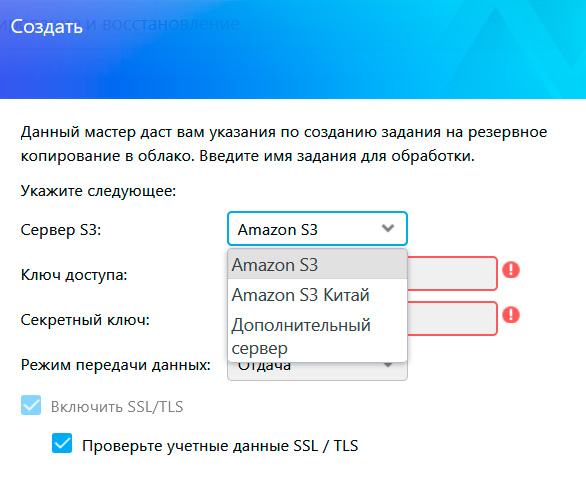 Встроенная поддержка резервирования в облаке Amazon S3 или на дополнительном сервере, доступном через Интернет.