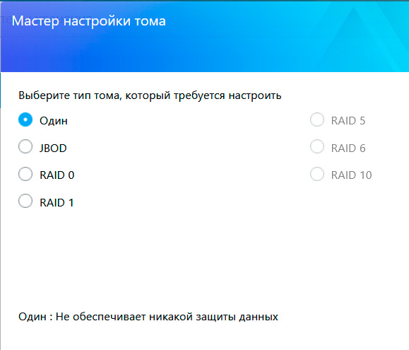 Так это сам NAS сделал RAID0, а не я. Я проверял, как работает быстрая настройка. Я для домашних NAS всегда делаю Single.