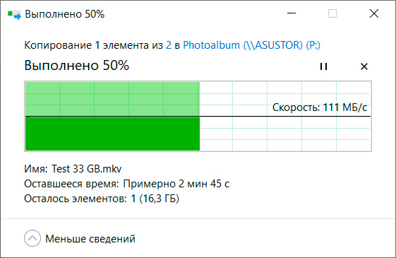 Скорость копирования на NAS - больше 100 Мбайт в сек, фактически производительность упирается только в сетевой интерфейс. Мощности проца хватает, загрузки выше 40% не видел, памяти тоже вроде норм.