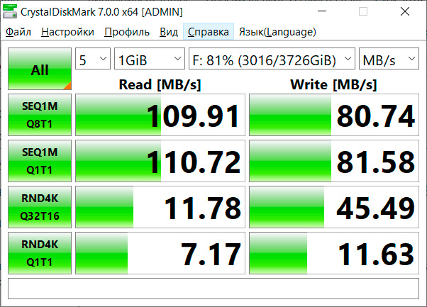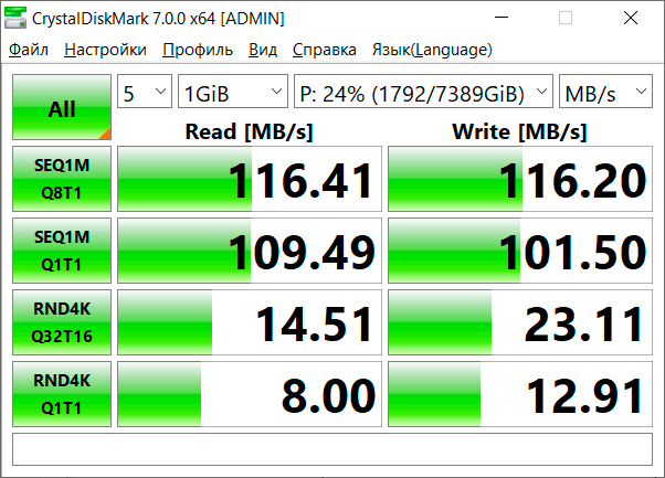 Энергопотребление: 13,8 Вт (эксплуатация), 7,2 Вт (диск в спящем режиме), 0,34 Вт (режим сна)