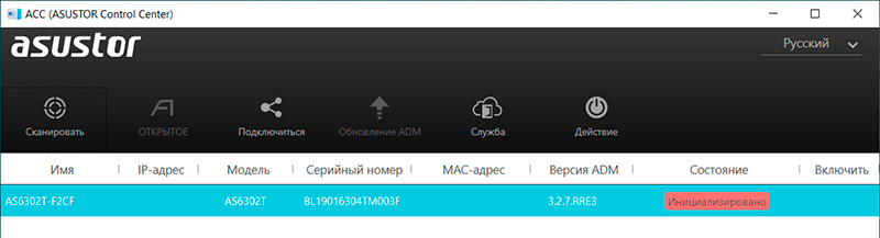 Управление устройством осуществляется через браузер, для входа в админку лучше всего использовать программу ASUSTOR Control Center, которая скачивается с сайта разработчика. Эта программа обнаружит накопитель в сети и позволит зайти в его настройки. (Без программы, конечно, тоже можно обойтись: нужно просто выяснить, на каком IP-адресе сидит NAS, но с программой можно ничего не выяснять, сама все найдет.)